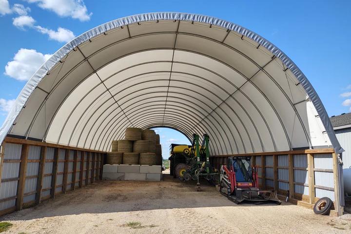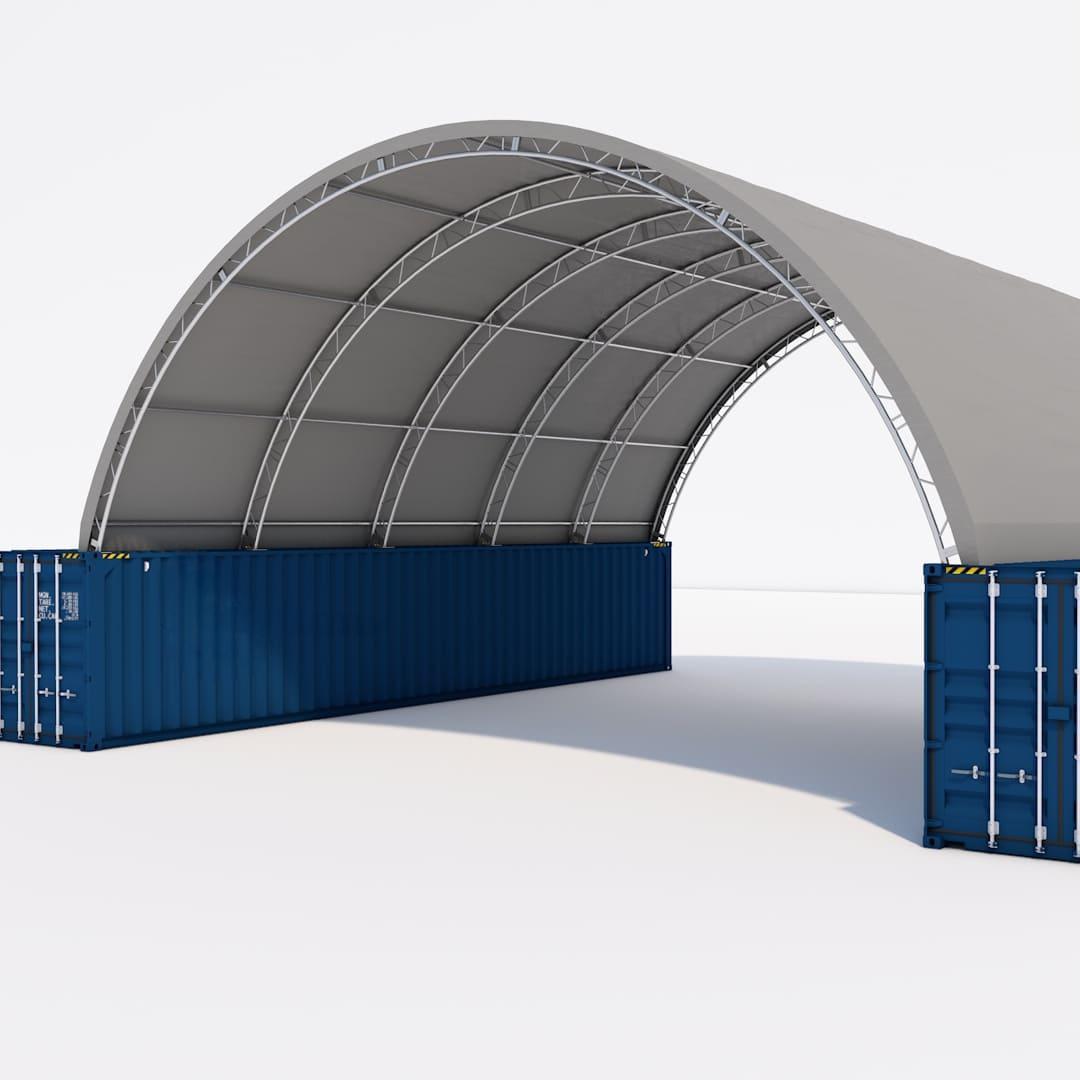 Customized 40FT Container Shelter Waterproof PVC Cover Steel Structure Container Dome Shelter Fabric Covered Building Storage